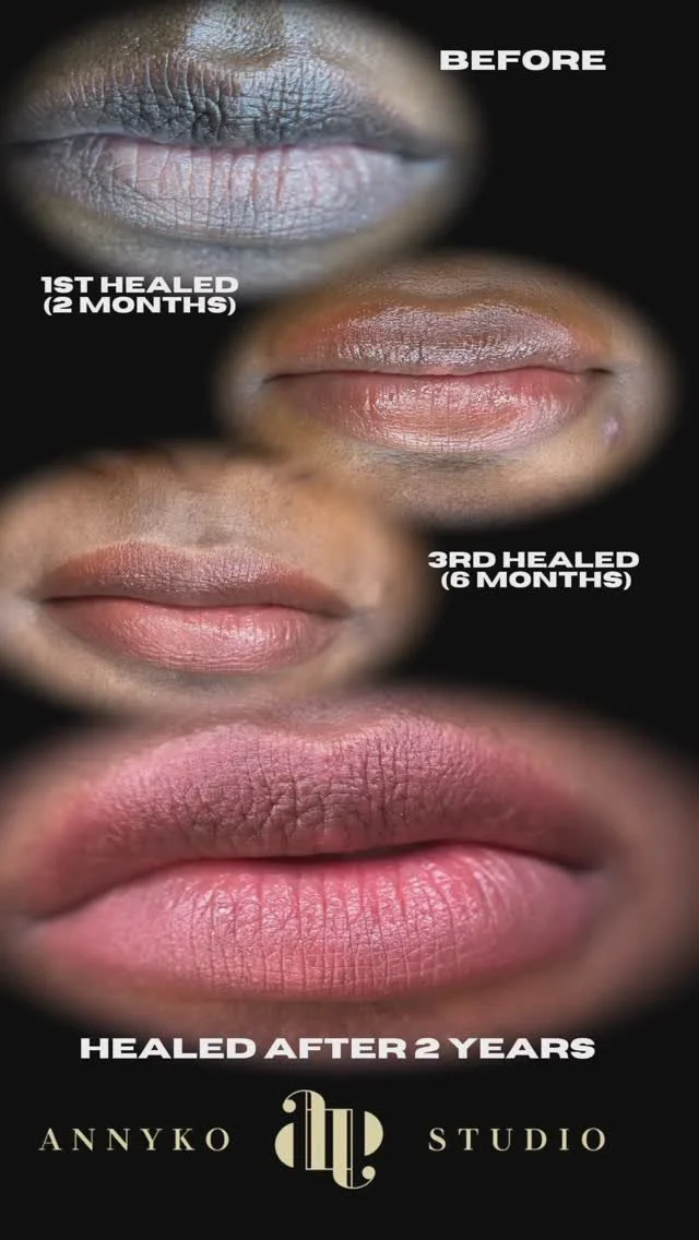 Lip Blush is a permanent lip makeup technique that will give your lips more vibrant color and brightness. By adjusting both the shape and color of the lips, we strive to create visual volume and clarity to lines
